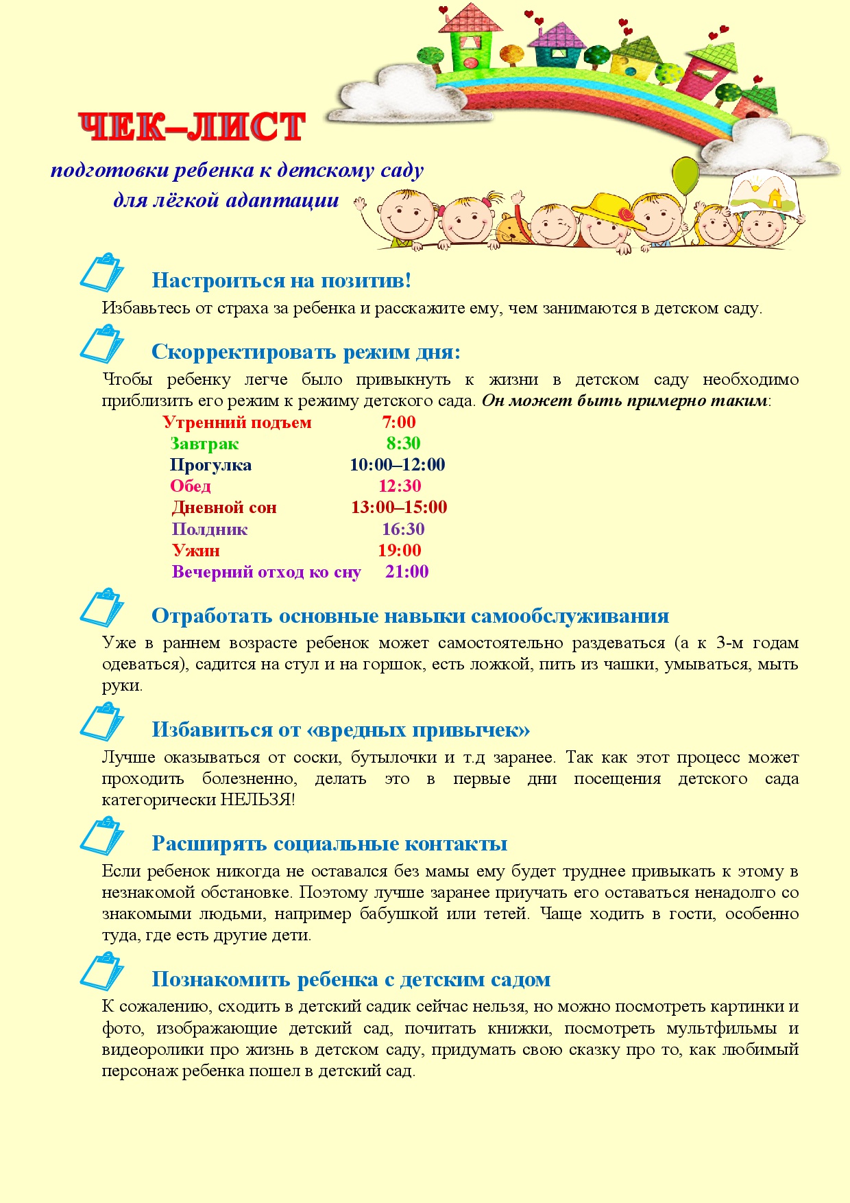 Чек-лист "Подготовка ребенка к садику"